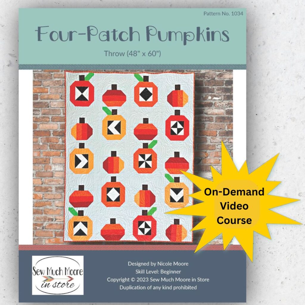 Don’t wait to embark on your autumn quilting adventure. Grab your Four Patch Pumpkins pattern and fabric kit at Sew Much Moore, and let your creativity bloom this season!