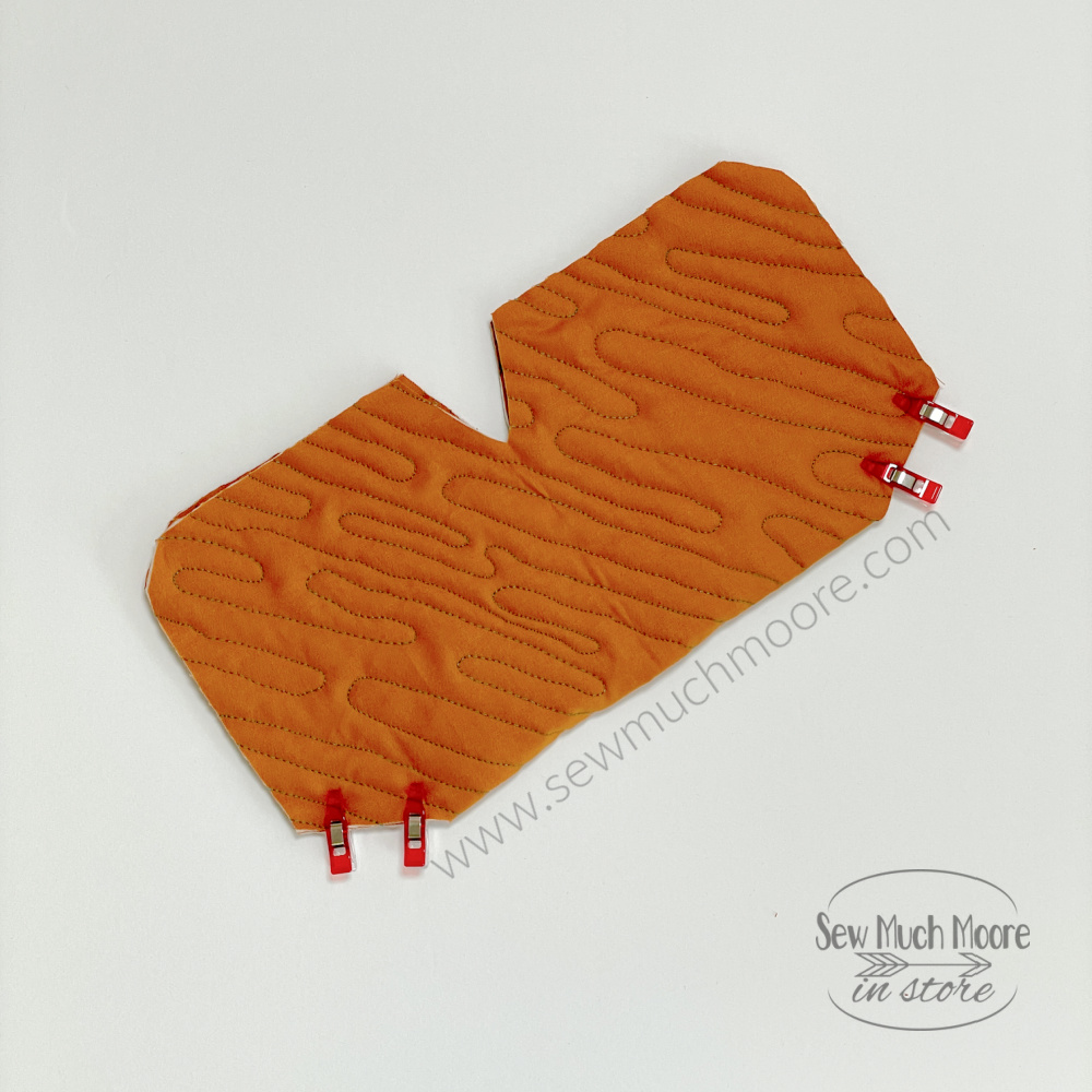 Now, place the two quilted pieces right sides together and pin around the edges.