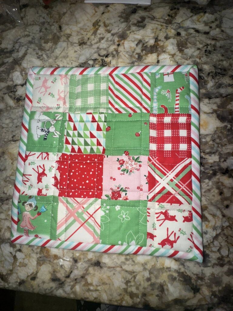 One of the highlights of this swap? Exploring all the photos and stories shared by our talented community! From bold, modern patterns to fun and colorful designs and everything in between each hot pad was packed with creativity and personality. Some makers dug into their favorite fabric stash, while others picked fresh colors and prints inspired by their swap partners. Every piece was unique, making this swap truly special.