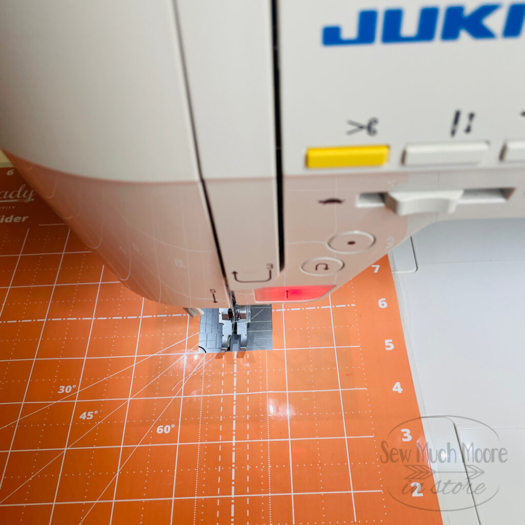 One of my favorite ways to get a great seam allowance is by using a Juki Brand quarter-inch presser foot. While this foot doesn’t come standard with the Juki TL2010Q; it is easily purchased aftermarket. These feet are super simple to switch out. You just remove the side screw and replace the foot. Once you have the new foot in the place you can just begin sewing. This foot is specifically for a quarter-inch seam allowance. This specialty sewing foot is particularly great for making quilt blocks.