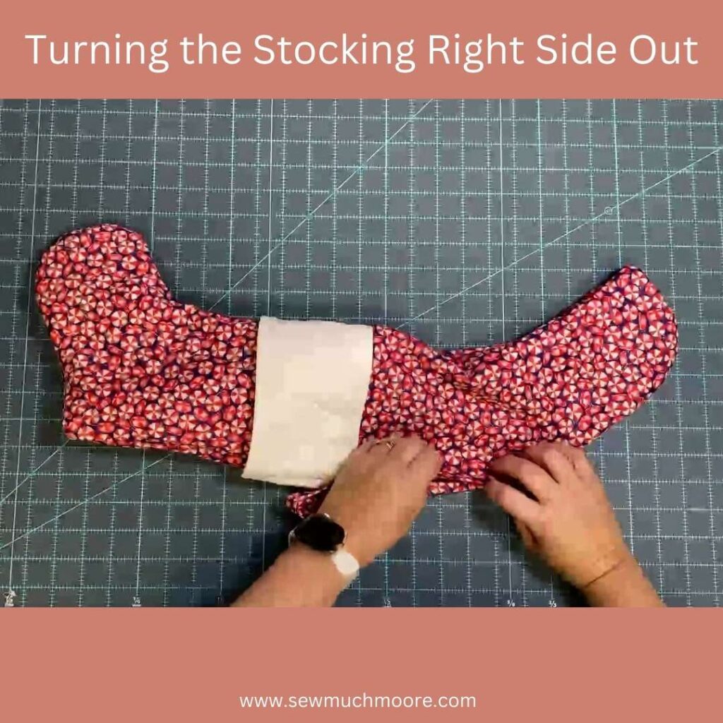Turning it right side out through the gap in the lining felt like a little magic trick, and I couldn’t help but smile when I saw the finished stocking. A quick press, and it was ready to hang.