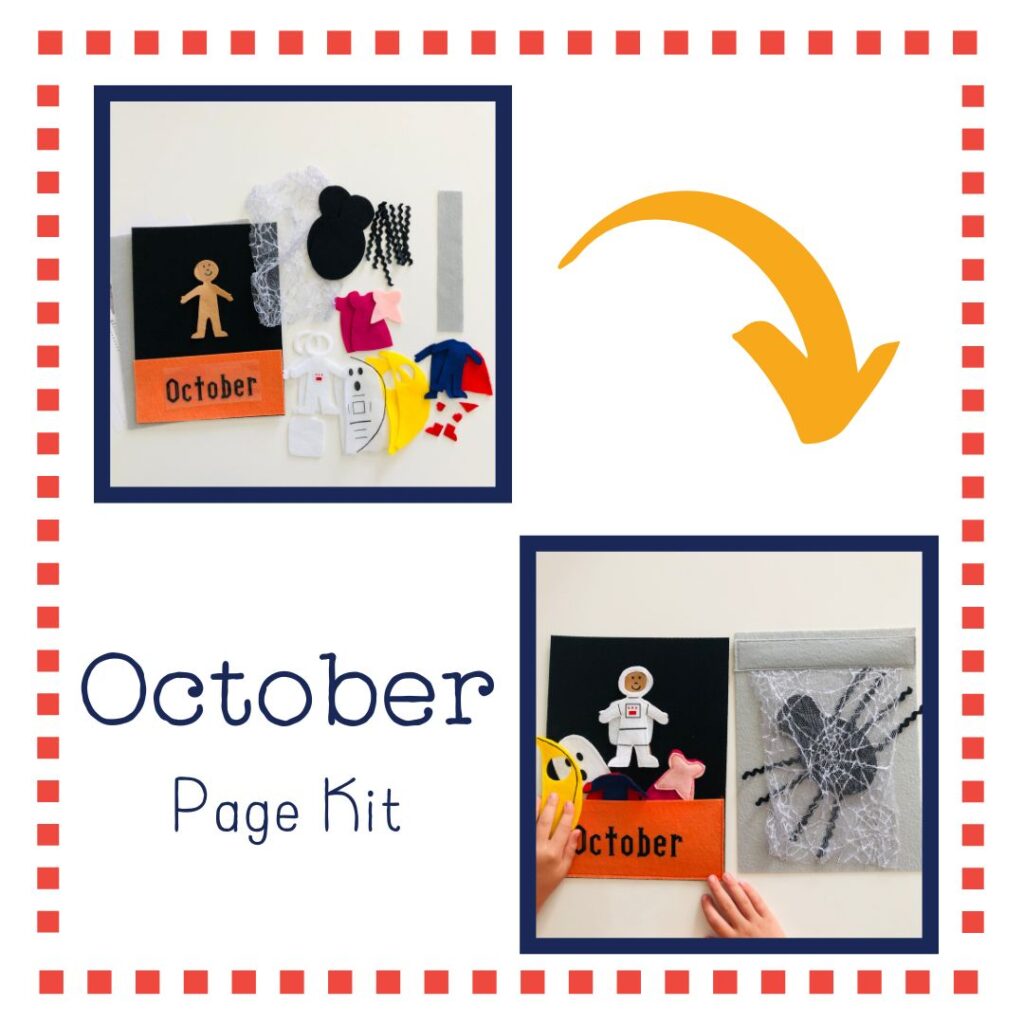 I love the idea of calendar themed pages! Children will learn the months of the year, while also practicing fine motor skills (snapping, zipping, tying bows, weaving), colors, shapes, letter and number recognition, and counting. There is also plenty of opportunity for imaginative and creative play! Kailan Carr has monthly kits that you can purchase to make creating fun and easy!