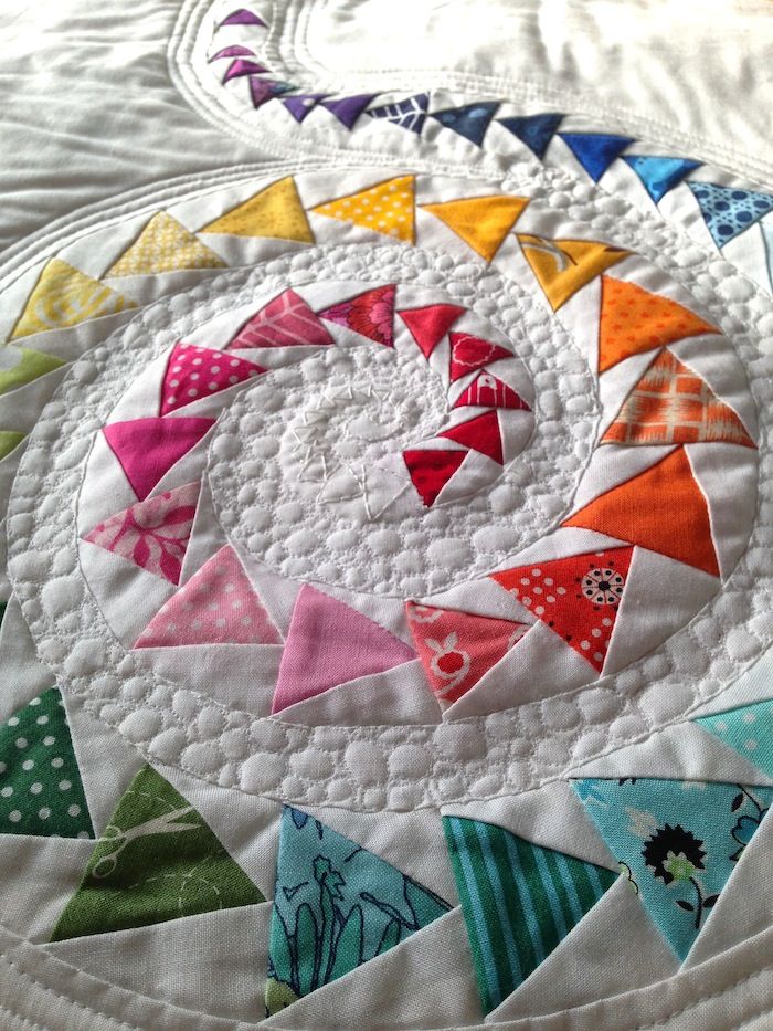 Introducing “Spiral Geese,” By Better off Thread, a handmade mini quilt that’s a whirlwind of color and creativity! With vibrant arrows swirling in a captivating spiral pattern on a crisp white background, this quilt is a dynamic blend of fun and elegance. Each colorful arrow dances around the center, creating a mesmerizing design that’s sure to brighten any space. Perfect for adding a touch of playful charm and artistic flair to your home, “Spiral Geese” is a joyful celebration of motion and color. Whether you’re looking to jazz up your decor or find a unique and thoughtful gift, this quilt is bound to bring smiles and warmth to everyone who sees it!