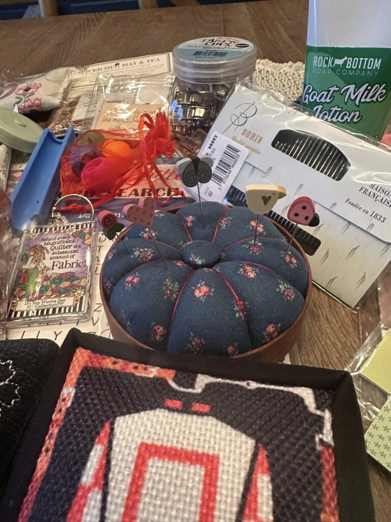 One of the highlights of this swap was seeing the photos and stories shared by our amazing community! From classic and elegant styles to fun, colorful designs—and everything in between—each pin cushion reflected creativity and personality. Some makers used treasured fabric from their stash, while others selected fresh prints inspired by their partners. Every piece was truly one-of-a-kind, making this swap extra special.