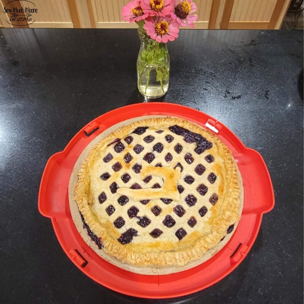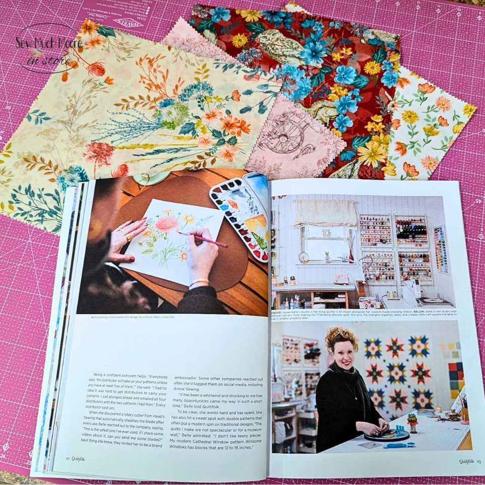 She brought a homemade pie—with a sewing machine cutout on top—along with mini goodie bags for everyone. We even received a locally mined quartz (personally delivered by Belle’s father) and I received a special sneak peek sampling of her newest fabric collection.