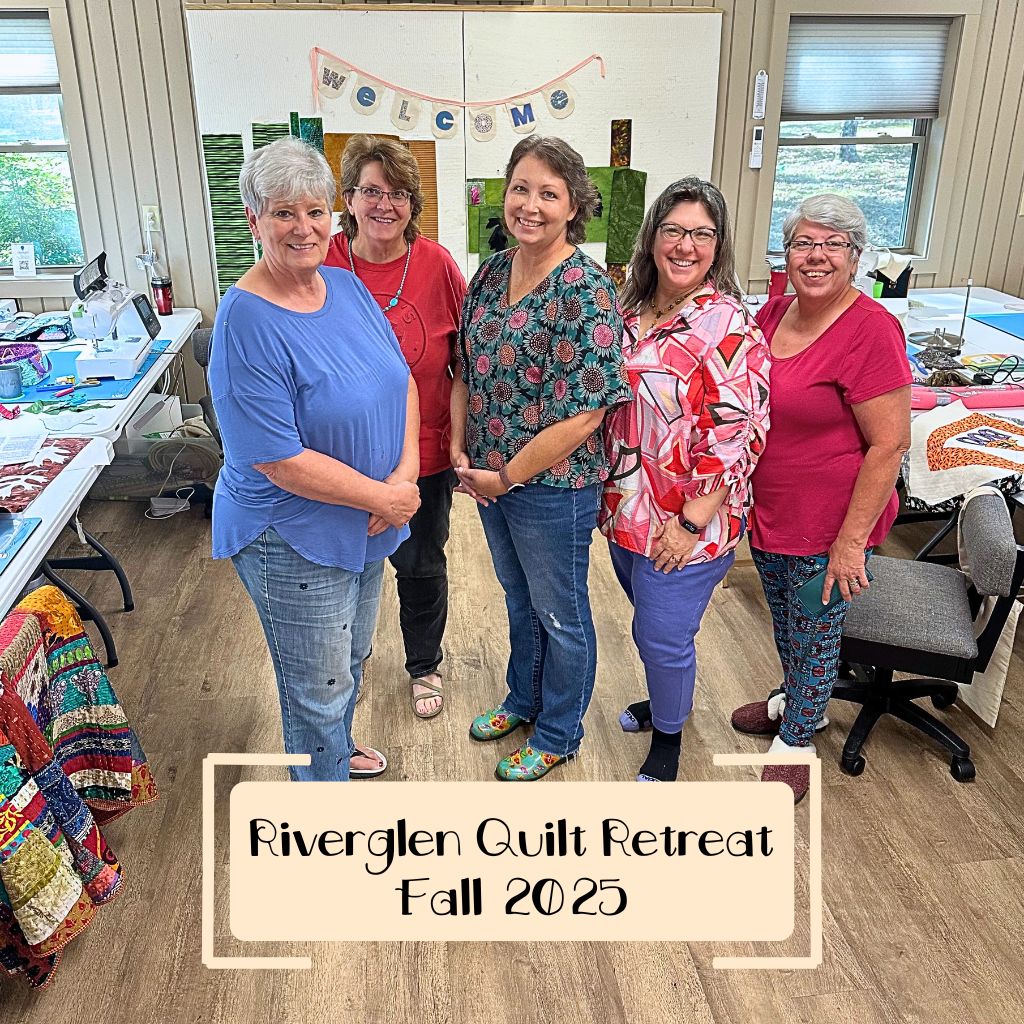 Our recent quilt retreat at Riverglen, near Mount Ida, Arkansas, was everything a quilter could hope for. The drive through the Ouachita National Forest was gorgeous—rolling hills, winding roads, and trees filled with yellow, orange, and plenty of green. Fall wasn’t quite at its peak yet, but it was on its way. The crisp air and peaceful drive set the tone for a wonderful few days ahead.