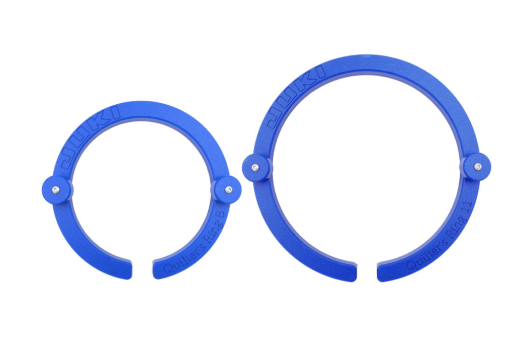 Free Motion Quilting Rings includes options for an 8” round hoop and an 11” round hoop.