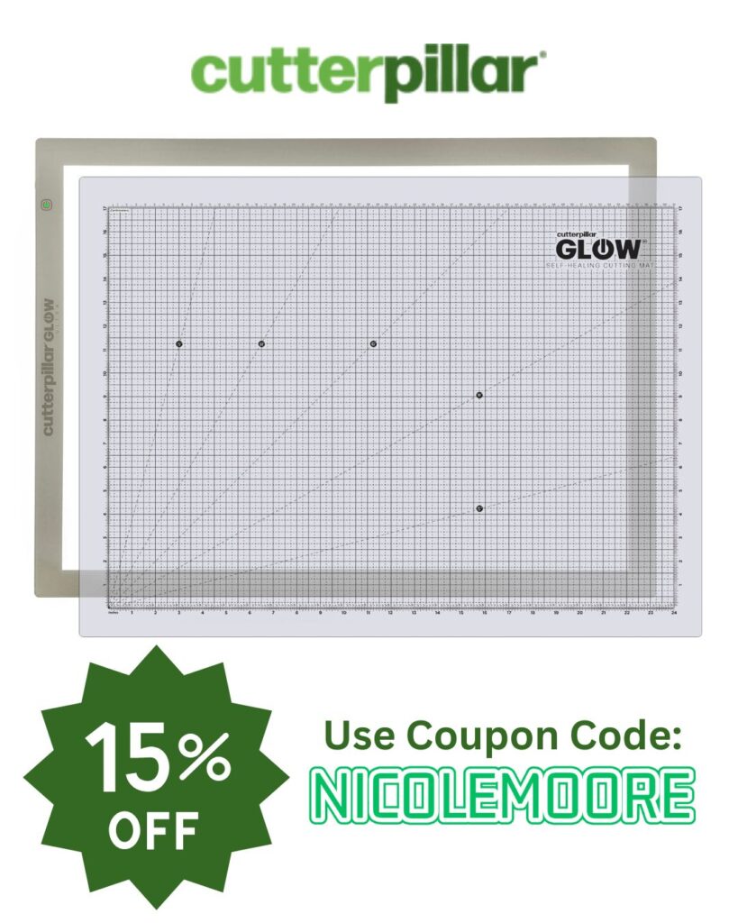 Next, the tall tree blocks, adding height and visual interest to each quilt. Check out what Pat and Laura created this week. The prize for this week was the Glow Mini light board with translucent cutting mat. This was sponsored by Cutterpillar.